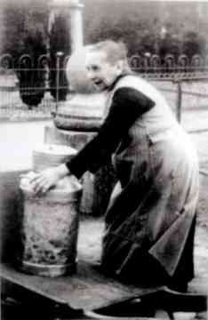 Mevr. Krabbenborg (Zieuwent) maakt de melkbussen schoon