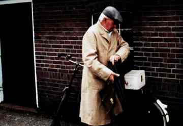 Melkrijder Bart Verhey, op weg terug naar Eefsele. Hier in de Rapenburgsestraat