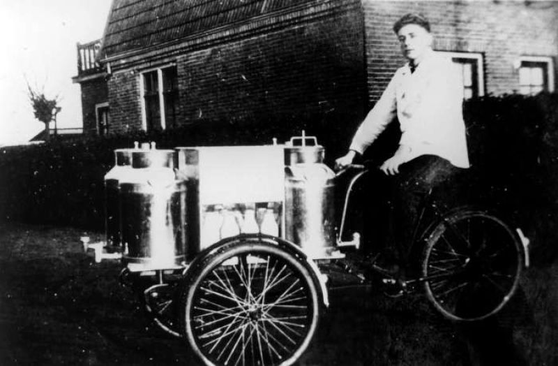Melkrijder Bart Verhey in de Rapenburgsestraat te Lichtenvoorde.