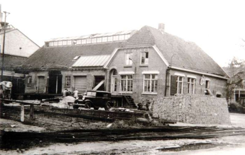 De verbouwing van de coöp zuivelfabriek aan de Zieuwentseweg in 1950. De Ford p