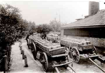 Wachtende melkrijders bij de coöp. zuivelfabriek aan de Zieuwentseweg te Lichte